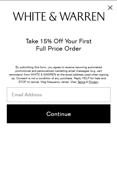 We offer 15% off your first order by signing up for our email and text message lists.